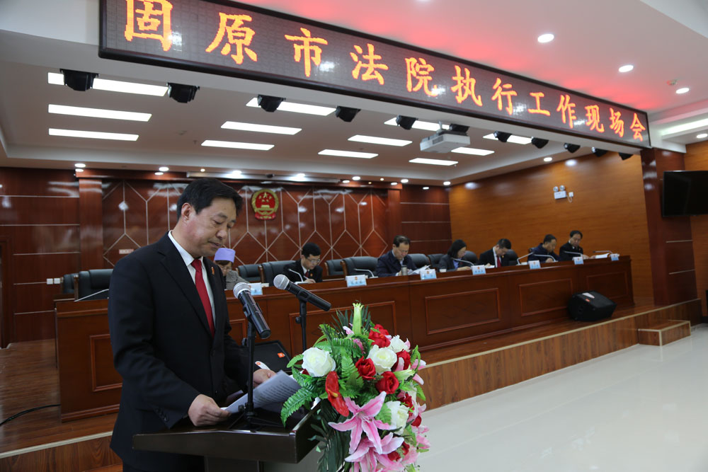 3月23日,固原市法院执行工作现场会在西吉法院顺利召开。5个区、县法院的主管领导、执行局长、内勤等共100余人参加会议。区高院执行二庭庭长周云涛,中院党组书记、院长张仁,县人大、政协等有关领导出席会议,西吉县委常委、县委副书记、政法委书记张亚萍致辞。张仁院长对去年全市法院执行工作给予充分肯定,勉励干警要发扬成绩,坚定信心;紧盯目标,强化责任;创新举措,取得实效。